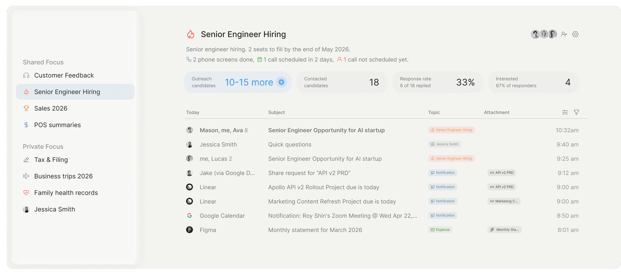 Choose which people, threads, and events can interrupt you. Get instant alerts for high-signal moments, while everything else is bundled into a clean digest.